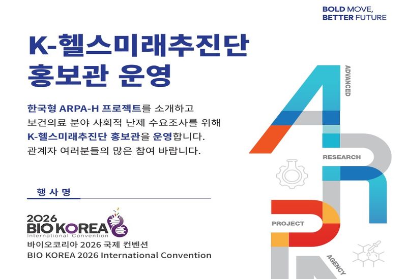 K-헬스미래추진단(추진단장 선 경)은 오는 4월 28일부터 30일까지 서울 코엑스에서 개최되는 ‘BIO KOREA 2026’에서 한국형 ARPA-H 프로젝트 중간성과를 처음 공개한다.