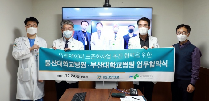 울산대학교병원과 부산대학교병원은 12월 24일 온라인 화상회의를 통해 ‘의료데이터 표준화사업 추진 협력 협약(MOU)’을 체결했다. 협약을 통해 양 기관은 보유 지식과 기술 역량을 바탕으로 세계적으로 가장 널리 사용되는 의료데이터 표준화 모델인 OMOP-CDM(Observational Medical Outcome Partners-Common Data Model)에 맞춰 데이터를 연계하게 된다.