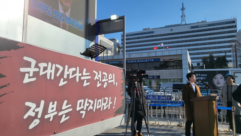 사직 전공의 100여 명이 오늘(22일) 오후 서울 용산 국방부 앞에서 ‘훈령 개정안 반대 집회’에 참여했다. 지난해 사직한 전공의 중 병역을 마치지 않은 3300여 명은 금년 입대를 기대했으나, 국방부가 일부 입대자를 제외한 사직 전공의를 ‘현역 미선발자’로 분류하고 최대 4년간 입영을 대기토록 하는 훈령 개정을 예고하면서 논란이 일고 있다.