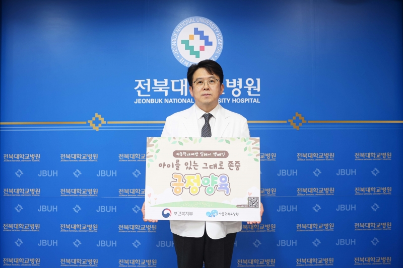 전북대학교병원(병원장 양종철)은 아동학대를 예방하고 긍정적인 양육 문화 확산을 위해 아동학대 예방 릴레이 캠페인에 참여했다. 보건복지부와 아동권리보장원이 주관하는 ‘아이를 있는 그대로 존중, 긍정양육’ 릴레이 캠페인은 아동학대에 대한 경각심을 높이고 긍정적인 양육 문화를 확산하고자 추진됐다.