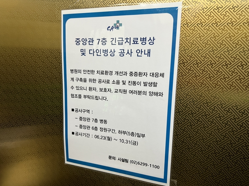 병원 내부 곳곳에서는 소아청소년과 외래 공간, 긴급치료병상 등 진료 공간 리모델링 공사가 진행되고 있다. 공사 구간은 차단막으로 분리돼 있으며 환자들은 안내선과 분리 동선을 따라 이동했다.