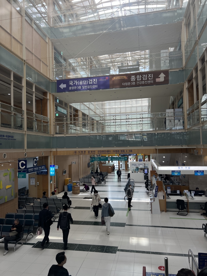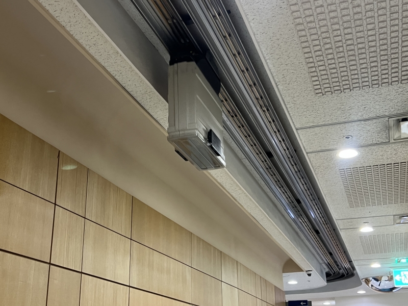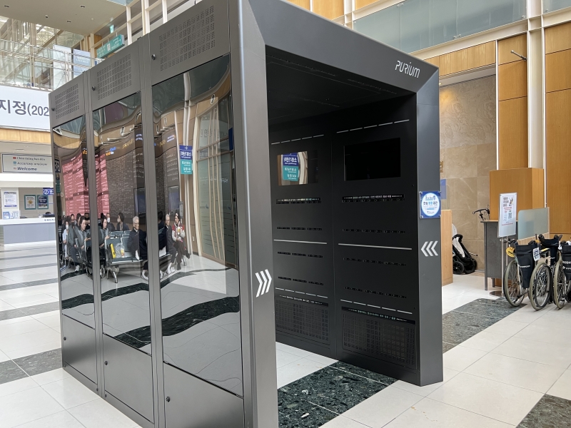 본관 3층 천장에서는 레일형 운송 장비가 움직이며 눈길을 끌었다. 검체·서류·약제 등을 자동 이송하는 물류 업무로 의료진 업무 효율성을 높이는 모습이다. 다만 출입구에 비치된 LED 공기 살균 기능을 표방하는 청정 게이트는 가동이 멈춰 실효성에 물음표를 던졌다.