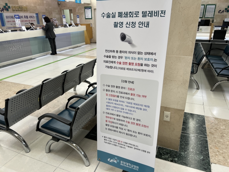 원내에는 수술실 폐쇄회로(CCTV) 촬영 안내문이 비치돼 있으며, 환자 또는 보호자가 신청하면 촬영이 가능하다는 절차가 명시돼 있다. 최근 의료계 전반에서 이어지는 수술실 CCTV 제도 변화가 현장에 반영된 모습이다.