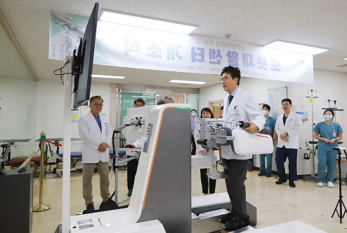 순천향대학교 부천병원(원장 문종호)이 최근 ‘로봇재활센터’를 개소하고 다양한 보행장애 환자의 빠른 회복을 위한 본격적인 운영에 들어갔다. 지난 4월 한국로봇산업진흥원이 주관하는 ‘간병로봇 지원사업’에 선정된 병원은 최신 보행재활로봇 ‘엔젤렉스’와 ‘모닝워크’를 도입했다.