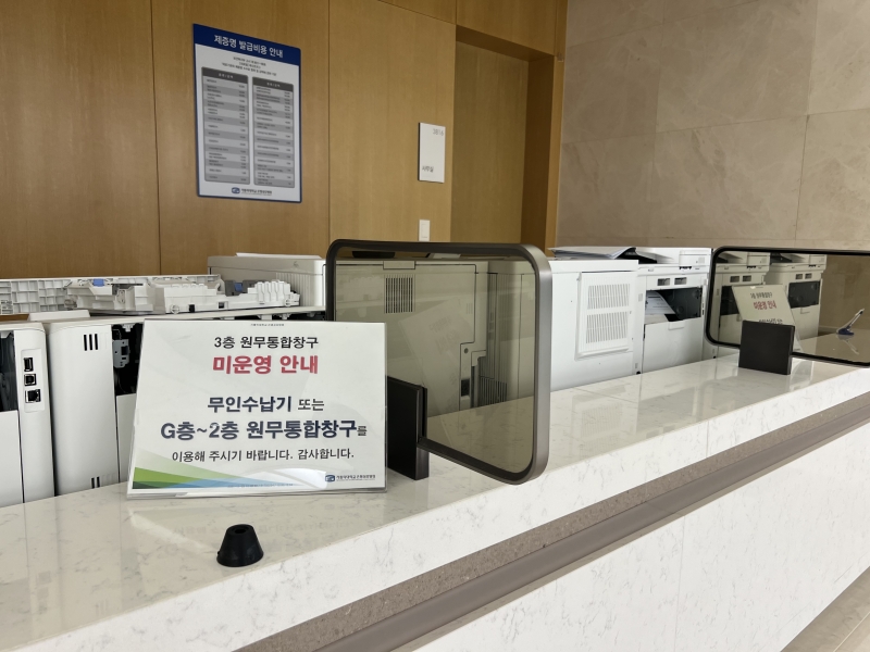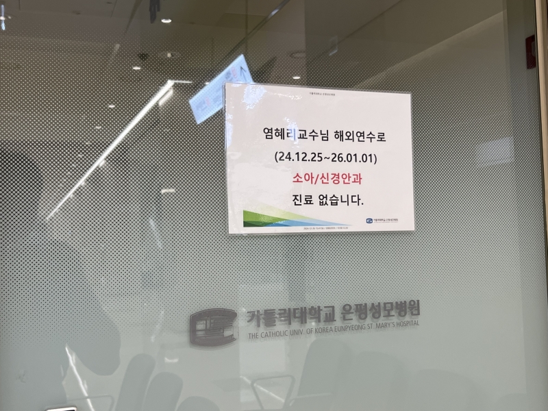 일부 구역은 일정에 따라 휴진 및 미운영 공지가 부착돼 있다. 소아안과는 "염혜리 교수 해외연수로 2024년 12월 25일부터 2026년 1월 1일까지 진료 없음" 이라는 안내문이 부착돼 있다. 또 3층 원무통합창구는 현재 미운영 중으로 병원 측은 G층~2층 원무창구 또는 무인 수납기를 이용해 달라는 별도 안내를 내걸었다.