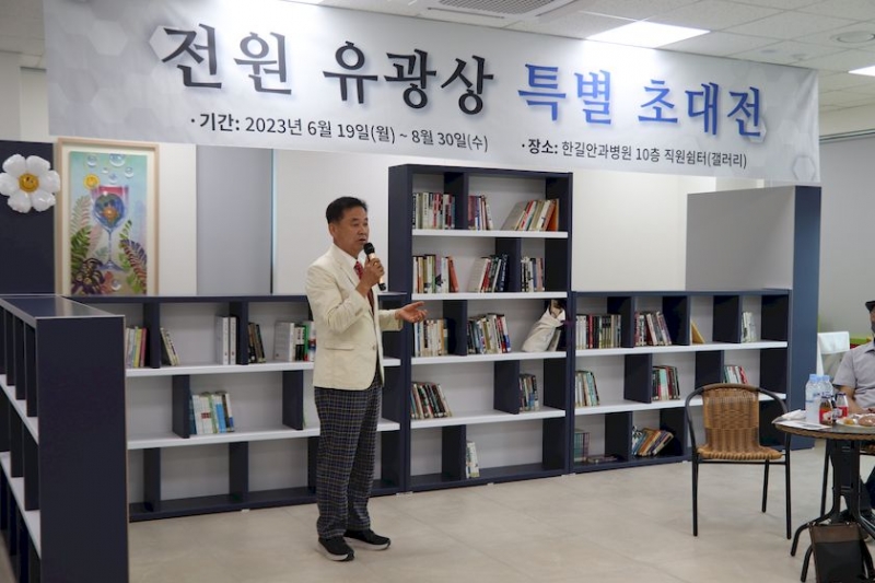 한길안과병원(병원장 최진영)은 최근 망막병원(신관) 10층 ‘직원쉼터’에서 ‘전원 유광상 화백 특별초대전’ 개막 행사를 개최했다. 전시회 기간은 8월 30일까지며 별도 입장료는 없다.