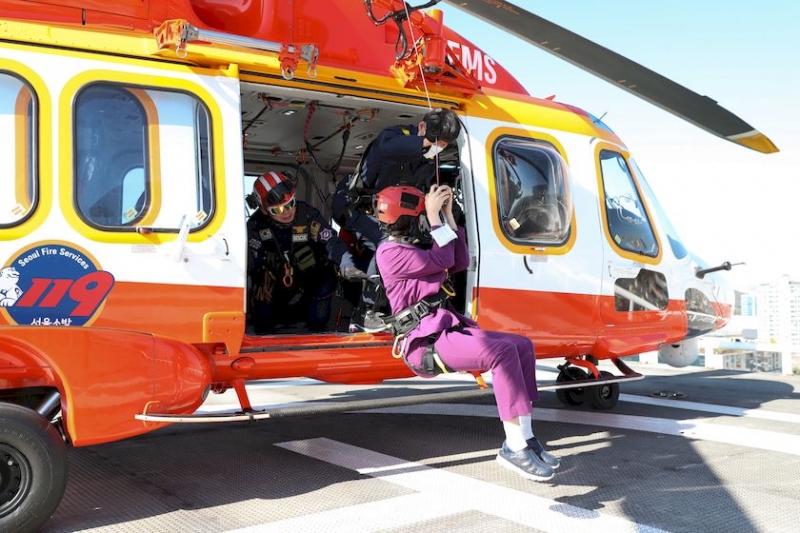 고려대학교구로병원(병원장 정희진)은 최근 헬리포트장에서 서울 119항공대와 중증응급환자 생존율 향상을 위한 합동훈련을 실시했다. 외상센터 의료진과의 합동 출동체계 구축을 통한 중증응급환자 생존율 향상을 목표로 진행된 이번 합동 훈련은 ▲Heli-EMS 사업설명 ▲항공기 안전교육 ▲호이스트교육 등이 진행됐다.