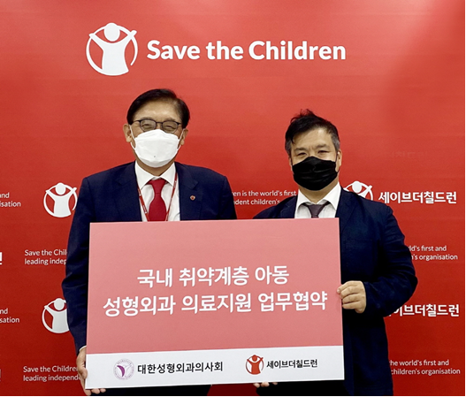 대한성형외과의사회는 국제아동권리 NGO '세이브더칠드런'과 업무협약을 맺고 화상 및 외상성 변형을 비롯해 선천적 기형 등 다양한 성형외과 수술이 필요한 국내 저소득가정 아동 지원에 나선다고 밝혔다. 이번 협약으로 세이브더칠드런과 의사회는 구순구개열과 같이 선천성 얼굴 기형이나 갑작스러운 화재나 사고로 인한 외상성 변형으로 어려움을 겪고 있는 의료 사각지대 취약계층 아동을 발굴, 성형외과 진료와 의료비를 무상으로 제공할 방침이다.