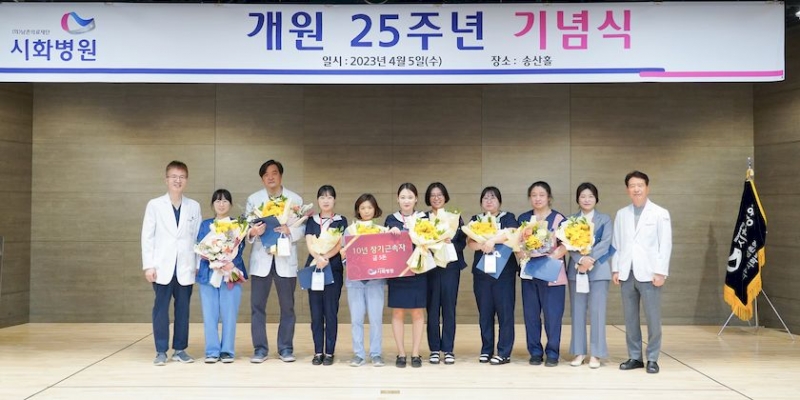 시화병원(이사장 최병철)은 지난 4월 5일 개원 25주년 기념식을 개최했다. 이번 행사는 축사, 숫자로 보는 개원 25주년 영상 시청, 장기근속자 시상, 기념사진 촬영 등의 순으로 진행됐다. 입사 10주년을 맞은 신경과 최우주 과장 외 11명에게는 장기근속 표창장과 금 5돈이 수여됐다.