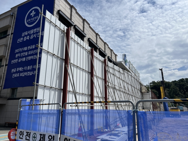 9월 4일. 비 온 뒤 습한 날씨 속 삼육서울병원은 신관 증축 공사로 분주하다. 외벽에는 2027년 6월 완공을 목표로 한 대형 현수막이 걸려 있으며 병원 로비 전광판에서는 지난 4월 10일 열린 신관 기공식 영상이 재생되고 있다. 이번 사업은 약 900억 원 규모, 병원 개원 이후 50년 만의 최대 규모 확장이다. 완공 시에는 중환자실, 수술실, 심뇌혈관센터, 음압 병상 등 필수 의료 기능이 대폭 강화되며, 스마트 병원 기반도 함께 구축될 예정이다.