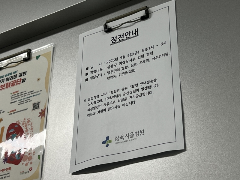 현재 공사로 인해 추모관 옥상주차장은 오는 9월 15일부터 폐쇄되며 주차동 엘리베이터도 멈춰 있는 상태다. 병원은 후문 방향 200m 거리 주차타워 이용을 안내하고 있다. 또 9월 5일(금) 오후 1시~6시에는 정전 작업이 예고돼 있어 일부 부서와 시설은 비상전력으로 운영될 예정이다.