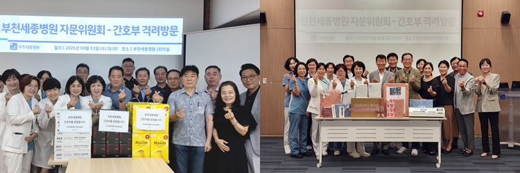 혜원의료재단 세종병원(이사장 박진식)은 "부천·인천세종병원 자문위원들이 지난 9월 3일과 5일, 병원 외래 간호부를 방문해 격려했다"고 8일 밝혔다. 자문위원들은 외래 간호부 소속 간호사들을 직접 만나 격려하고, 최신 랩탑 및 스마트폰, 컴퓨터 장비, 제빙기, 커피음료 등 물품을 전달했다.