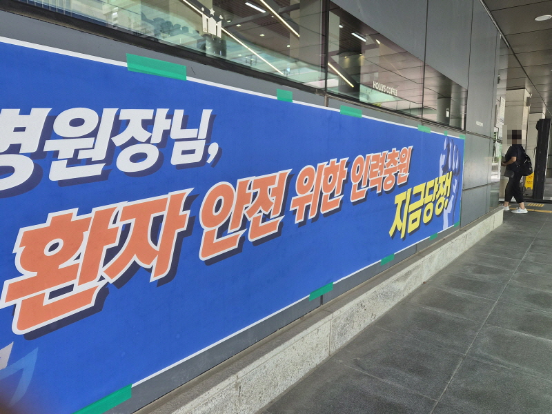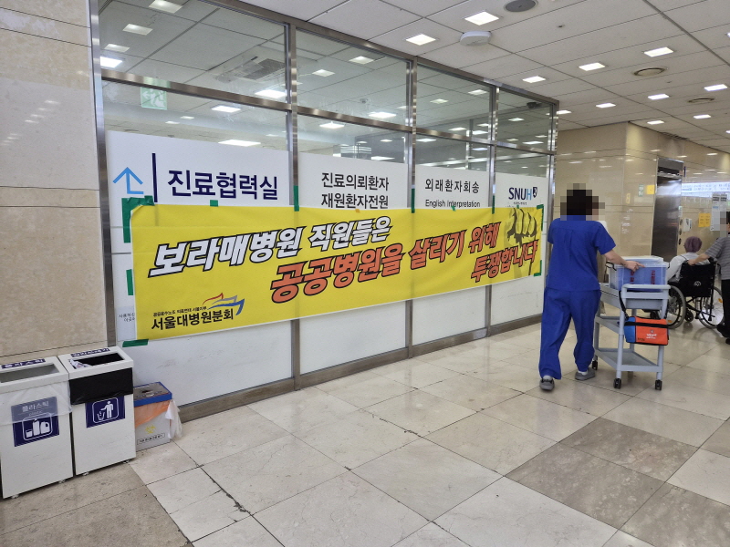 서울대병원 노동조합이 10일 총파업 선포를 예고한 가운데, 전날 서울대병원 운영기관인 서울시보라매병원에도 긴장감이 감돌았다. 병원 초입 곳곳에는 노조의 요구 사항을 담은 현수막과 벽보가 내걸렸고, 입구에서는 조합원들을 대상으로 쟁의행위 찬반투표가 진행됐다.