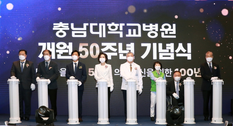 충남대학교병원은 7월 1일 노인센터 5층 대강당에서 온‧오프라인으로 ‘개원 50주년 기념식’을 개최했다. 윤환중 원장은 “앞으로도 국제적 경쟁력을 갖춘 최고 수준 병원으로 진료와 교육, 연구 등 ‘사람 중심 의료’와 ‘생명 존중 이념’으로 의료 중심이 되는 병원으로 최선을 다하겠다”고 말했다.