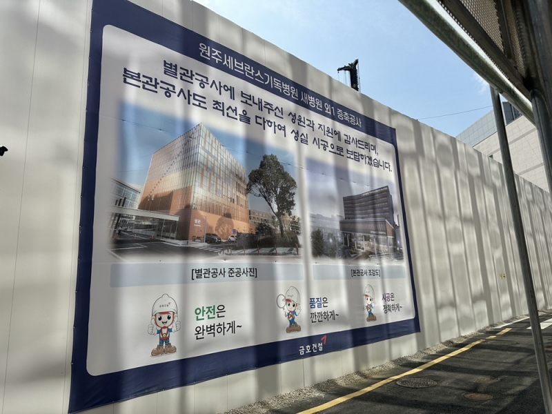 8월 21일 오전 11시, 원주세브란스기독병원은 새병원 건립 공사에 한창이다. 새병원은 ▲1인실 위주 중환자실 ▲최첨단 수술실 ▲문화공간 ▲지하주차시설 ▲약 900병상(기존 862병상)을 갖추게 되며 오는 2028년 완공 예정이다.