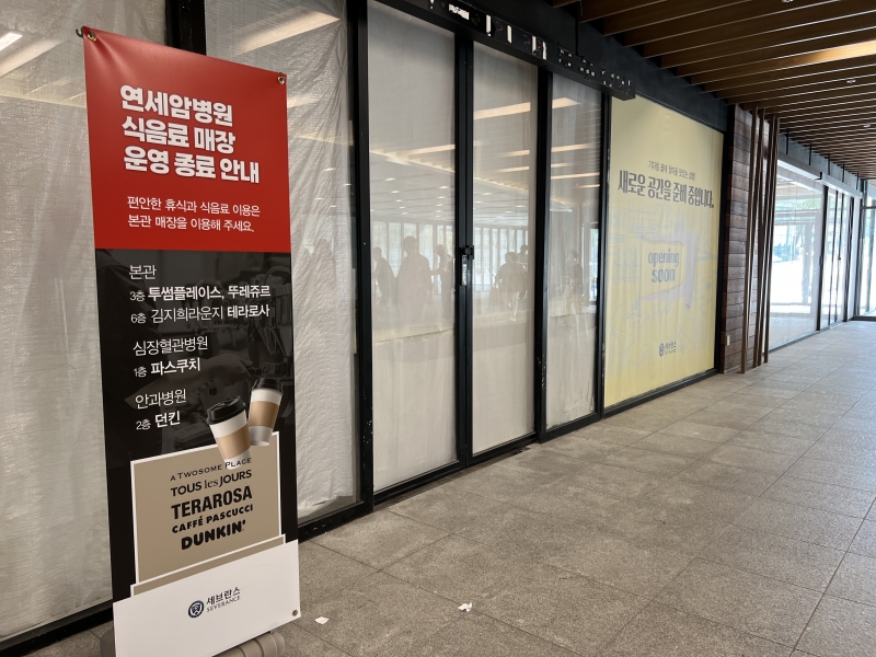 폭염이 기승을 부린 지난 8월 21일 오후 3시, 세브란스병원 앞 횡단보도는 사람들의 끊임없는 발걸음으로 붐볐다. 암병원 1층에 있던 식음료 매장은 운영을 종료했고 그 자리에는 "새로운 공간을 준비 중"이라는 안내 문구가 붙어 있다. 안과병원은 대기 공간을 가득 메운 환자와 보호자들로 북적였고 본관 복도까지 분주한 분위기가 이어졌다.