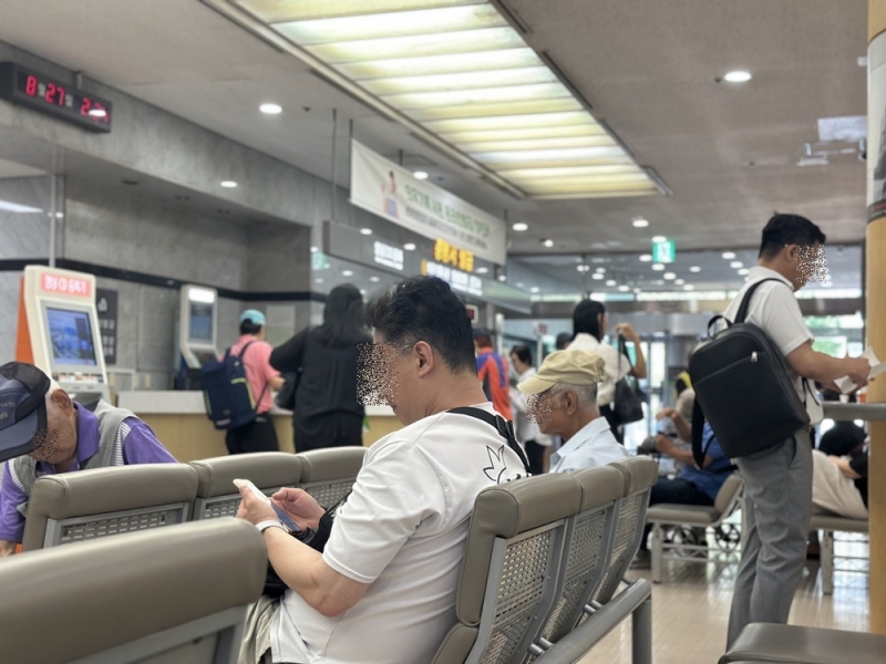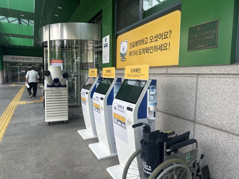8월 27일 오후 2시. 인제대학교 상계백병원은 환자와 보호자들로 북적여 앉을 자리를 찾기 어려울 정도였다. 본관 입구에는 환자 도착 여부를 확인할 수 있는 키오스크가 마련돼 있었고, 사용이 익숙하지 않은 어르신들을 위해 안내 직원이 상주하며 도움을 제공했다.