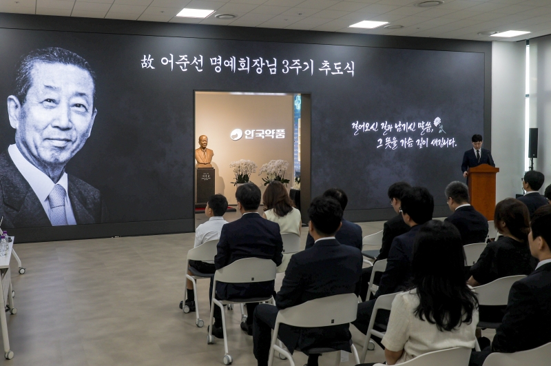 안국약품은 지난 8월 4일 과천 사옥 내 어준선 명예회장 기념관에서 故 해담(海談) 어준선 명예회장의 3주기 추도식을 거행했다. 어진 부회장은 “아버님께서 강조하신 ‘하면 된다는 신념과 주인의식을 갖고 하면 반드시 성공할 수 있다’는 철학이 안국의 핵심”이라며 “따뜻하고 바른 길로 걸어갈 것”이라고 말했다.