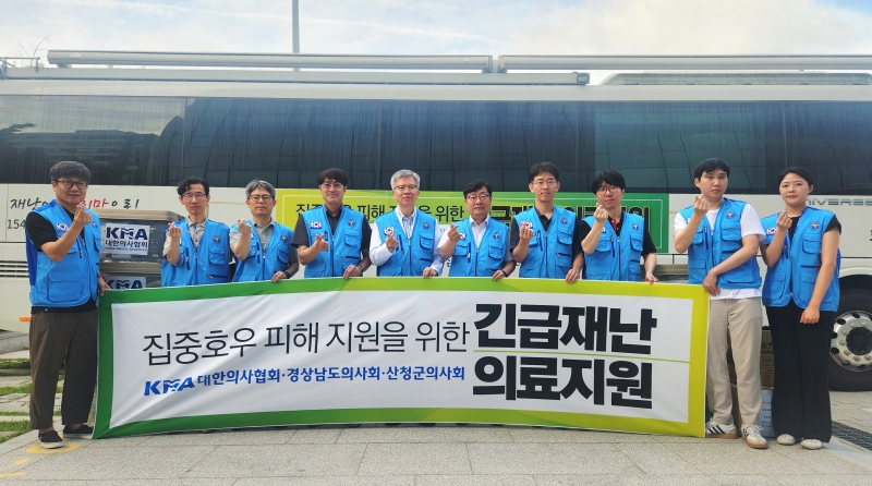 대한의사협회(회장 김택우)는 집중호우로 심각한 수해를 입어 특별재난지역으로 선포된 경남 산청군에 긴급의료지원단을 파견해 구호·의료지원 활동을 적극 펼쳤다.