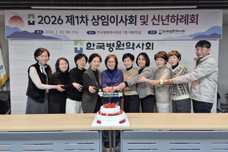 한국병원약사회(회장 정경주)는 최근 회관 대회의실에서 제1차 상임이사회 및 신년하례회를 개최하고 2026년도 회무를 시작했다. 정경주 회장은 “지난해 병원약사 캐릭터 ‘약온이’와 ‘약든이’를 선보이고, 병동전담약사 표준업무 모델을 담은 책자를 발간하는 등 중점 추진 분야에서 의미 있는 성과를 거뒀다”고 밝혔다. 이어 “올해는 창립 45주년을 맞이하는 뜻깊은 해인 만큼 현재 추진 중인 사업에 더욱 속도를 내어 의미 있는 성과를 창출하고, 특히 인력 기준 개정과 적정 수급 체계 마련에 있어 실질적인 진전을 이루기 위해 함께 노력하자”고 말했다.