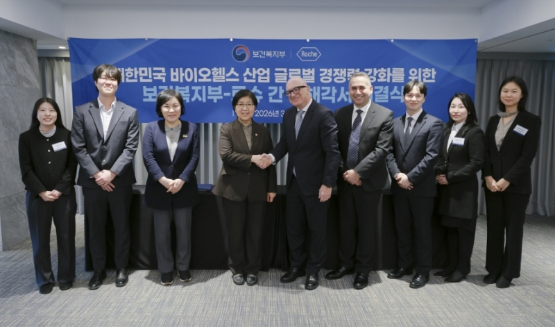 보건복지부(장관 정은경)와 로슈(인터내셔널 리전 총괄 요르그 루프)는 3월 3일 서울 중구 반얀트리 호텔에서 '대한민국 바이오헬스 산업 글로벌 경쟁력 강화를 위한 양해각서(MOU)'를 체결했다. 이를 통해 로슈의 글로벌 연구개발(R&D) 연결망과 시장 진출 경험 등을 국내 제약바이오 연구개발 생태계와 공유하고 임상시험 유치 및 개방형혁신(오픈이노베이션) 분야 등에서 상호 협력하게 된다.