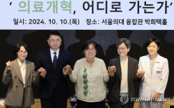 지난달 10일 서울의대 비대위가 정부 관계자들과 가진 의료개혁 관련 토론회에서 기념촬영을 하고 있다. 사진제공 연합뉴스서울의대‧서울대병원 교수협의회 비상대책위원회 3기가 교수들의 재신임을 확인하고 활동을 이어가기로 결정했다.비대위는 8일 보도자료를 내고 "지난 6~8일 전체 교수 대상으로 3기 비대위 재신임 여부에 대한 투표를 시행한 결과, 총 응답자 683명 중 531명(77.7%)가 현재의 비대위를 계속 신임한다고 답했다"고 밝혔다.이로써 의정갈등 해소를 위해 정부, 시민단체 등 각계와 다방면으로 소통해…