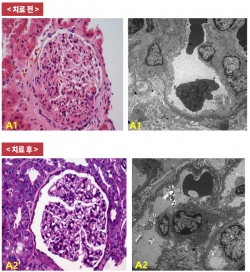 콩팥 기능이 매우 나쁜 중증IgA신장염, 특히 사구체 여과율이45ml/min미만이면 거의100%말기신부전으로 이행하는 환자들에게 희소식이 전해졌다.여과율26ml/min인 중증IgA신장염 환자(그룹 A) 7명과여과율은 좋지만 신생검 소견상Lee classification IV/V기로 진단된 환자(그룹 B) 3명을 6년에서 10년 장기 관찰한 결과, 두 그룹 모두 여과율이 호전되면서 콩팥 기능이 호전돼 투석을 받지 않고 생활한 것으로 나타났다.국내 신장병 치료 최고 권위자인 조병수의원의 조병수 원장(경희대 의대 명예교수)…