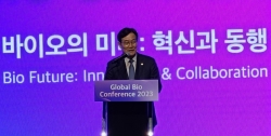 30일 신동근 보건복지위원장이 식약처 주최로 열린 글로벌 바이오 콘퍼런스에서 축사 하고 있다. 사진 최진호 기자“대통령의 R&D 카르텔에 대해 한마디 하자면‘어처구니 없는 일’.적극적 지원이 필요한 시기에내년 R&D 비용을 16.6%나 삭감하는 일은 구체적인 근거도 없고 예산 측정 방식도 의문이다.”신동근(더불어민주당, 인천 서구을) 국회 보건복지위원장은 지난 30일 ‘바이오 미래: 혁신과 동행’을 주제로 개최된 ‘2023 글로벌 바이오 컨퍼런스(GBC)’에서 이같이 말했다.GBC는 식약처…