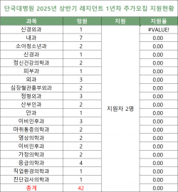 [2025년 레지던트 추가모집 지원현황] 단국대병원