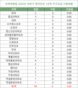 [2025년 레지던트 추가모집 지원현황] 인하대병원