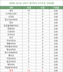 [2025년 레지던트 추가모집 지원현황] 상계백병원