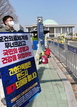 의사들이 간호법 및 의사면허박탈법 저지를 위한 전국대표자회의 개최와 함께 가두행진을 벌였다. 간호법과 의료인면허취소법 통과 저지를 위해서다.2일 간호법⸱면허박탈법 저지를 위한 전국대표자회의가 대한의사협회 회관 지하 1층 회의실에서 개최됐다. 전국 의사 대표자들은 대통령 집무실 근처로 가두행진 후 더불어민주당 주도 법안 강행 규탄 시위도 진행했다.이날 전국대표자회의에는 전국 시도 및 산하단체 의사 대표자들과 간호법 및 면허박탈법 저지 비상대책위원회 등이 참석했다. 두 시간 가량 회의 후 용산 전쟁기념관까지 행진에 나섰다.…