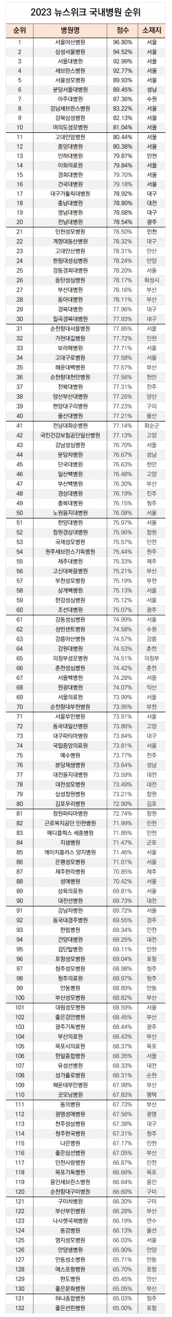 미국 시사주간지 뉴스위크가 최근 국내 병원 순위를 공개했다. 상위권은 수도권 소재 상급종합병원들이 독식하며 지난해와 유사한 양상이 펼쳐진 가운데, 병원 간 순위 변동이 조금씩 나타났다.뉴스위크는 지난 2일 글로벌 조사 기관인 스타티스타(Statista)와 함께 28개국의 2300개 병원을 평가해 ‘2023년 세계 최고병원(World’s Best Hospitals)’을 발표했다.평가 항목은 ▲28개국 8만여 명 의사, 병원 관계자, 보건전문가 대상 온라인 설문조사 결과(54%) ▲의료성과지표(29%) ▲환자 만족도 조사(14…