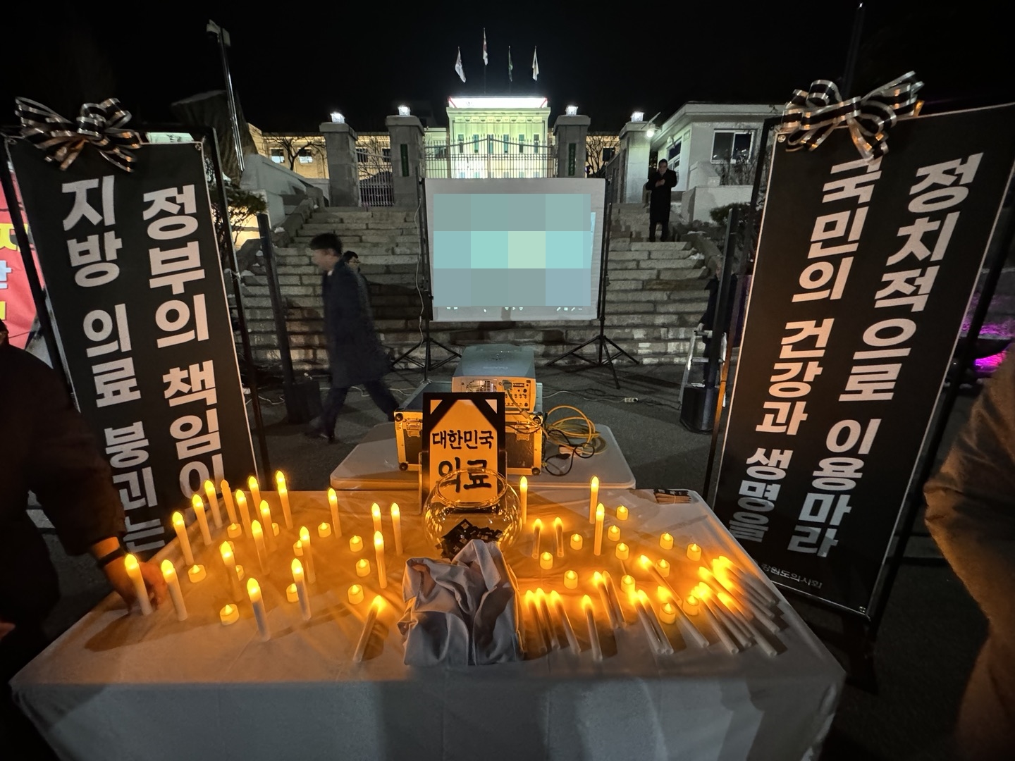 서울시의사회는 22일 오후 7시부터 서울 용산 대통령실 앞에서 제2차 의대 정원 증원·필수의료 패키지 저지를 위한 궐기대회'를 개최했다.