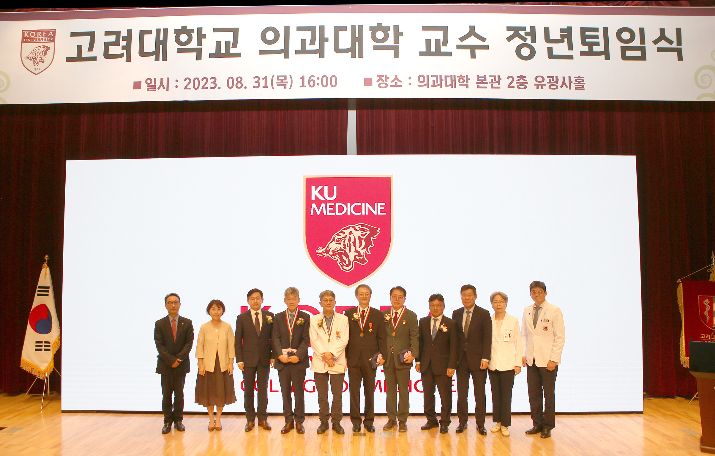 [데일리메디 박대진기자] 고려대학교 의과대학(학장 윤영욱)은 최근 유광사홀에서 내과학교실 조원용, 정신건강의학교실 김승현, 미생물학교실 송기준, 진단검사의학교실 이창규 교수의 정년퇴임식을 거행했다.