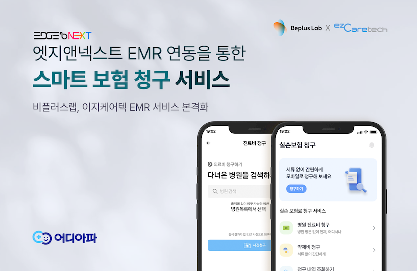 비플러스랩과 이지케어텍이 첫 번째로 선보이는 스마트 보험청구 서비스는 엣지앤넥스트 EMR을 도입한 병원은 별도의 개발 공수 없이 해당 서비스를 이용할 수 있다.