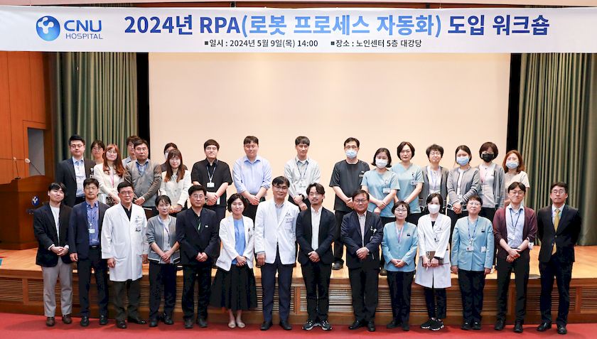 [데일리메디 박대진기자] 충남대학교병원(병원장 조강희)은 최근 노인센터 대강당에서 RPA(Robotic Process Automation, 로봇 프로세스 자동화) 도입 워크숍을 개최했다.
