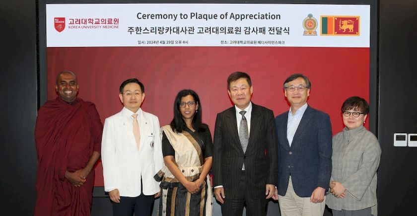 [데일리메디 박대진기자] 고려대학교의료원(의료원장 윤을식)과 고려대 의과대학 교우회(교우회장 장일태)가 스리랑카 이주노동자 의료지원에 적극 나선 공로로 스리랑카 대사관으로부터 감사패를 받았다.