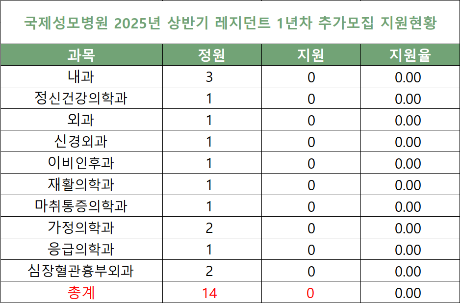 [2025년 레지던트 추가모집 지원현황] 국제성모병원