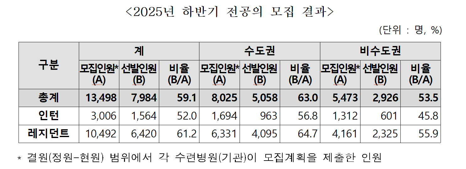 보건복지부와 수련환경평가위원회는 2일 2025년도 하반기 전공의 모집 결과를 발표했다.