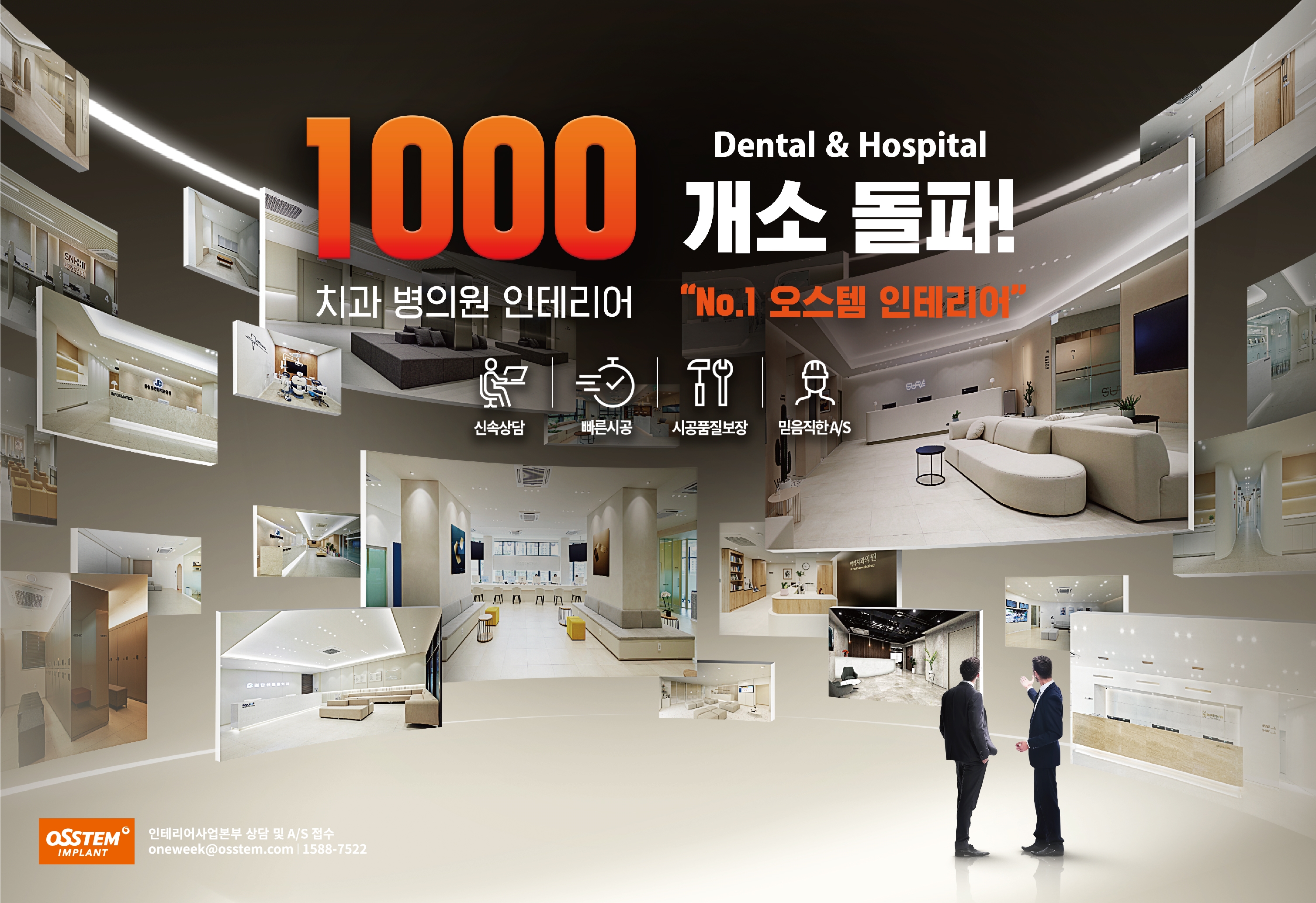 오스템임플란트(대표 엄태관)는 “치과 병·의원 인테리어 사업을 본격화한지 만 7년 만에 1000호 수주를 달성했다”고 14일 밝혔다.