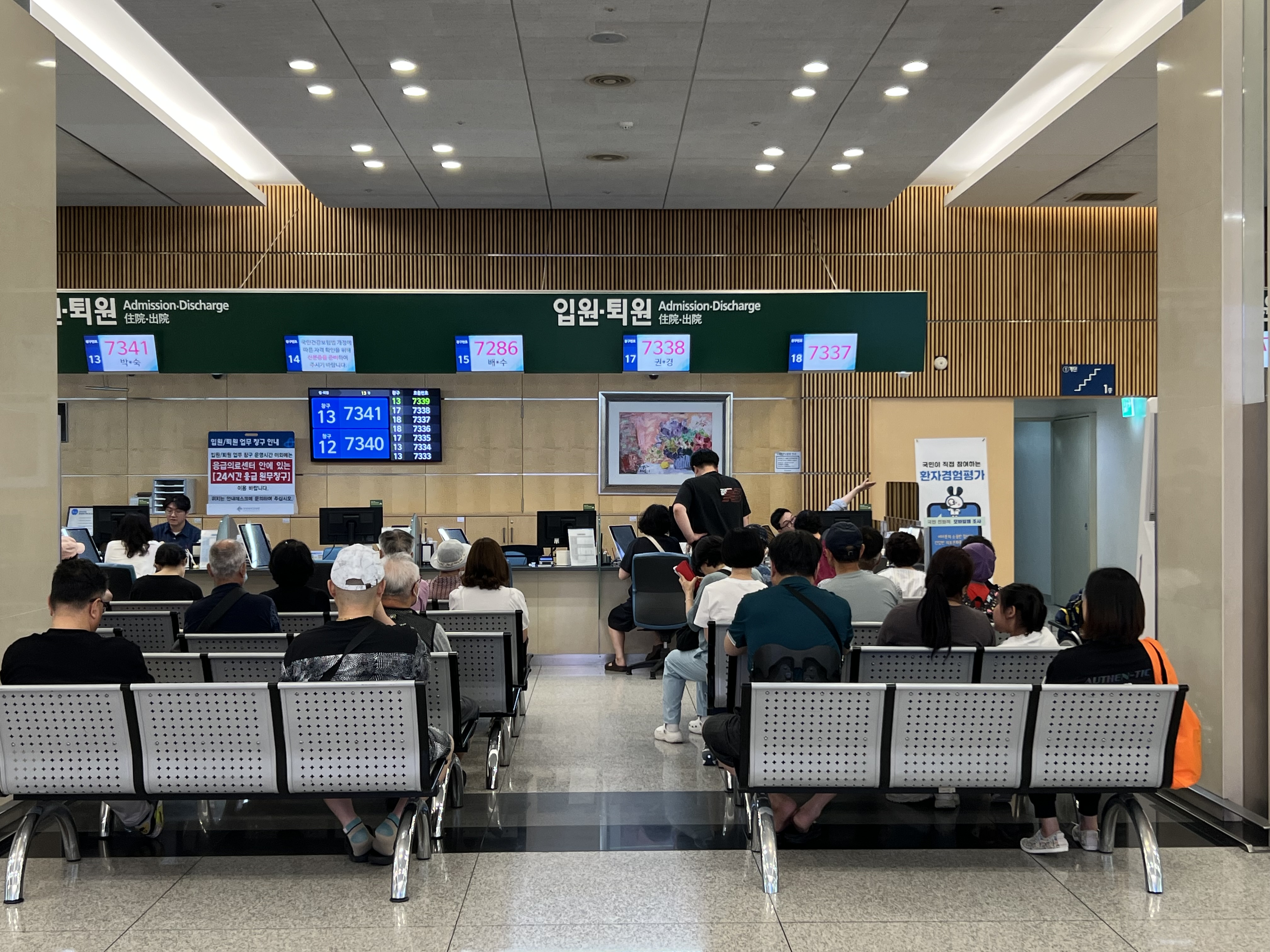 폭염이 절정에 달한 7월 23일 오후 3시. 건국대학교병원이 외래센터 증축과 주차타워 신설 공사를 본격화했다. 병원 인근에는 공사 안내 현수막과 가림막이 설치돼 있고 곳곳에는 환자와 내원객 동선을 안내하는 표지판이 설치됐다. 주차타워는 올해 11월 완공 예정이며, 외래센터는 2027년 1월까지 확장 공사가 진행된다. 병원 1층 로비에는 안내 로봇 ‘건국이’와 직원들이 내원객을 응대하고 있고 대기공간은 진료를 기다리는 환자들로 붐볐다.