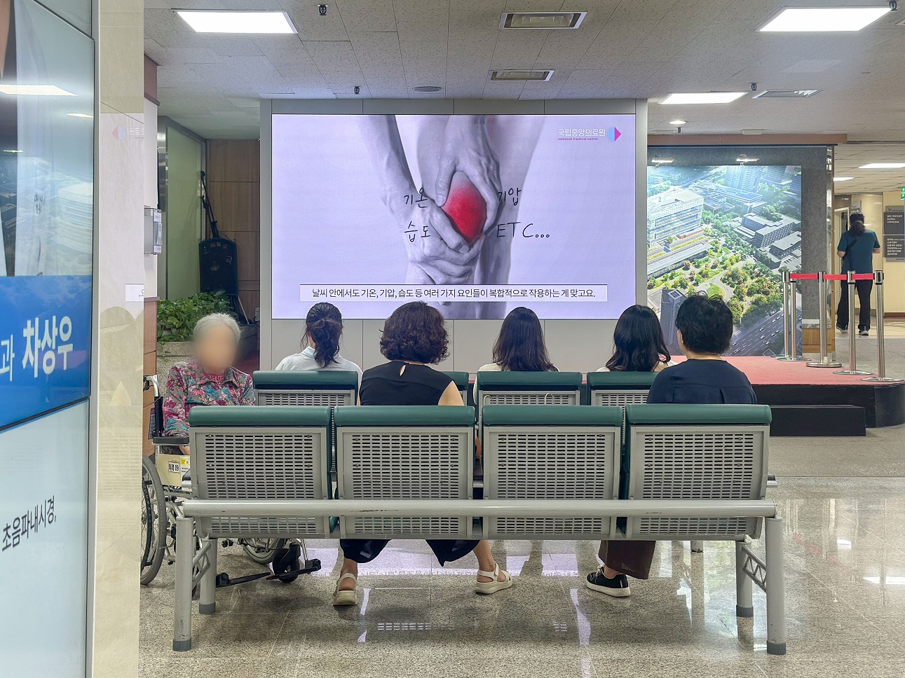 특히 최근 의료원 변화 중 하나로 본관 1층 로비 곳곳에 환자 소통 활성화를 위해 마련된 디지털 사이니지가 눈길을 끈다. 내부 게시판에는 의사 식사지시율, 임단협 타결 내용 등이 안내돼 있다. ‘기본급 3% 인상’과 ‘여름휴가비 상향’ 등 노동 환경 개선 성과가 소개되고, 여름 퀴즈 당첨자 명단이 붙어 있어 병원 일상을 보여주고 있다. ‘국가중심병원’을 표방한 국립중앙의료원의 정체성과 실험이 동시다발적으로 진행되고 있다. 낡은 공중전화기처럼 과거의 흔적은 여전하지만 국립중앙의료원은 내부부터 조용히 탈바꿈 중이다.