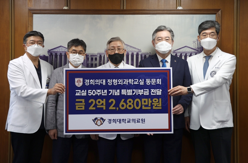 경희대의료원은 26일 ‘경희대학교 의과대학 정형외과학교실 동문회(이하 경정회)’가 모금한 ‘정형외과학교실 50주년 특별기부금’ 전달식을 진행했다고 밝혔다.