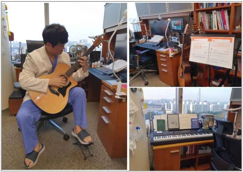 직업 자체가 수술을 하는 직업이다 보니 피아노와 기타 연습이 손가락 감각을 유지하는데 도움이 된다는 설명이다. 피아노는 정서적인 안정을 돕는다.