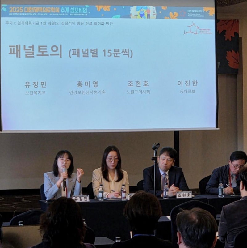 패널 토의에서는 보건복지부, 건강보험심사평가원, 지역의사회 관계자 등이 참석해 재택의료 확대를 위한 현실적 대안을 다뤘다.