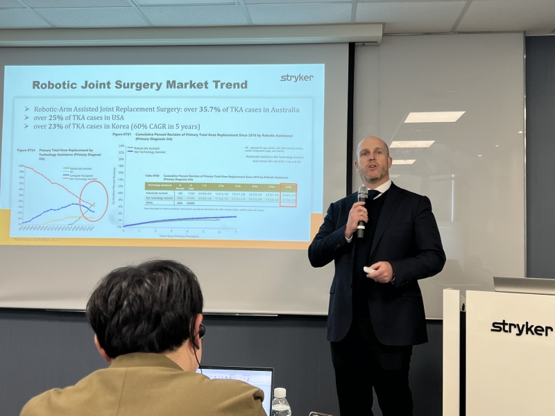 이날 자리에서는 알스터 맥클린 아시아 태평양 정형외과 사업부문 총괄이사가 나서 기술적 우위를 피력했다.