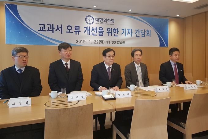 대한의학회(회장 장성구. 사진 中)는 22일 기자간담회를 갖고 "일선 초·중·고 학생들이 사용하는 교과서의 건강정보 관련 오류를 바로잡아 나갈 계획"이라고 밝혔다.
