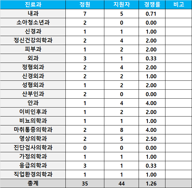[2026년 상반기 레지던트 모집 지원현황] 조선대병원