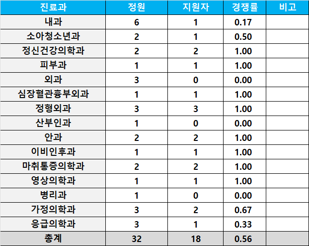 [2026년 상반기 레지던트 모집 지원현황] 건양대병원